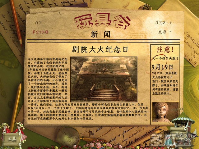 木偶戏在玩具谷曾是一种非常具有吸引力的表演,直到那场大火以前。现在,生锈的齿轮和黑暗之谜隐藏在奇怪的阴谋和凌乱的木偶之中。小男孩,西蒙,是最后一位失踪者。在游戏中,你将扮演一位侦探,解决谜题搜寻线索,去揭开另这座城市不悦的邪恶之谜。