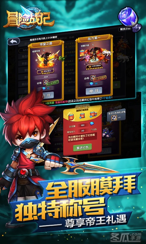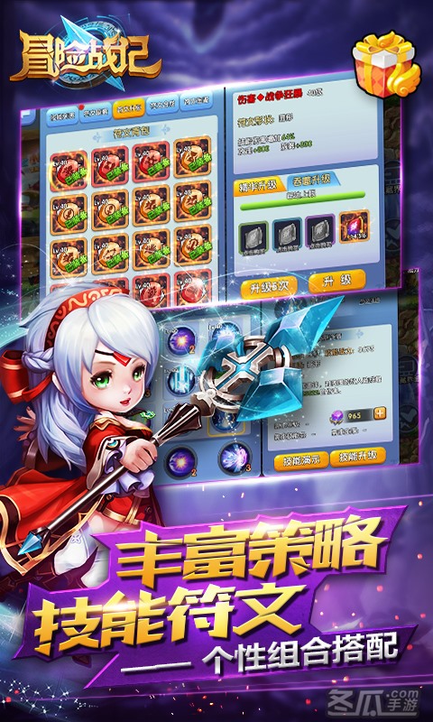 《冒险战纪》是一款横版过关冒险手游,在继承经典的冒险玩法和换装养成乐趣之余,加入了丰富多样的创新玩法,城头插旗留名的搞怪公会战,拥有个性称号和独特翅膀的荣耀体系,Q萌画风与炫酷战斗同时兼备!更有可爱萌宠伴你左右,一起踏上冒险之旅!