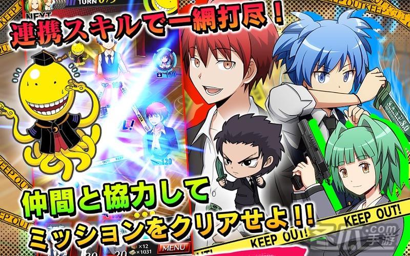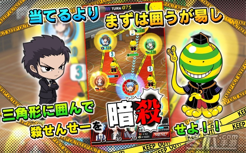 暗杀教室:围困的时间(Assassination Classroom)是BANDAI NAMCO Entertainment Inc.开发的一款动作类游戏。 暗杀教室:围困的时间(Assassination Classroom)的官方介绍 暗杀教室:围困的时间(Assassination Classroom)是一款以人气动漫《暗杀教室》为题材而打造的手游作品。在游戏中,玩家需要以潮田渚、赤羽业、茅野枫这三名3年E班的学生包围目标,然后发动暗杀技能把目标杀掉。当然,除了“杀老师”之外,目标还会是其他人! 《暗杀教室》讲述了被称为史上最凶恶的超生物“杀老师”将月球炸掉了七成,并扬言在第二年要炸掉地球,却以不明目的而担任惹鹬醒3年E班的教师。各国首脑将暗杀的重任交给惹鹬醒3年E班,配送特制的武器给他们,希望学生们能在一年之内将杀老师杀掉,并给与巨额的报酬。各同学想尽办法杀死这名老师,故事围绕着非日常的校园生活而展开。