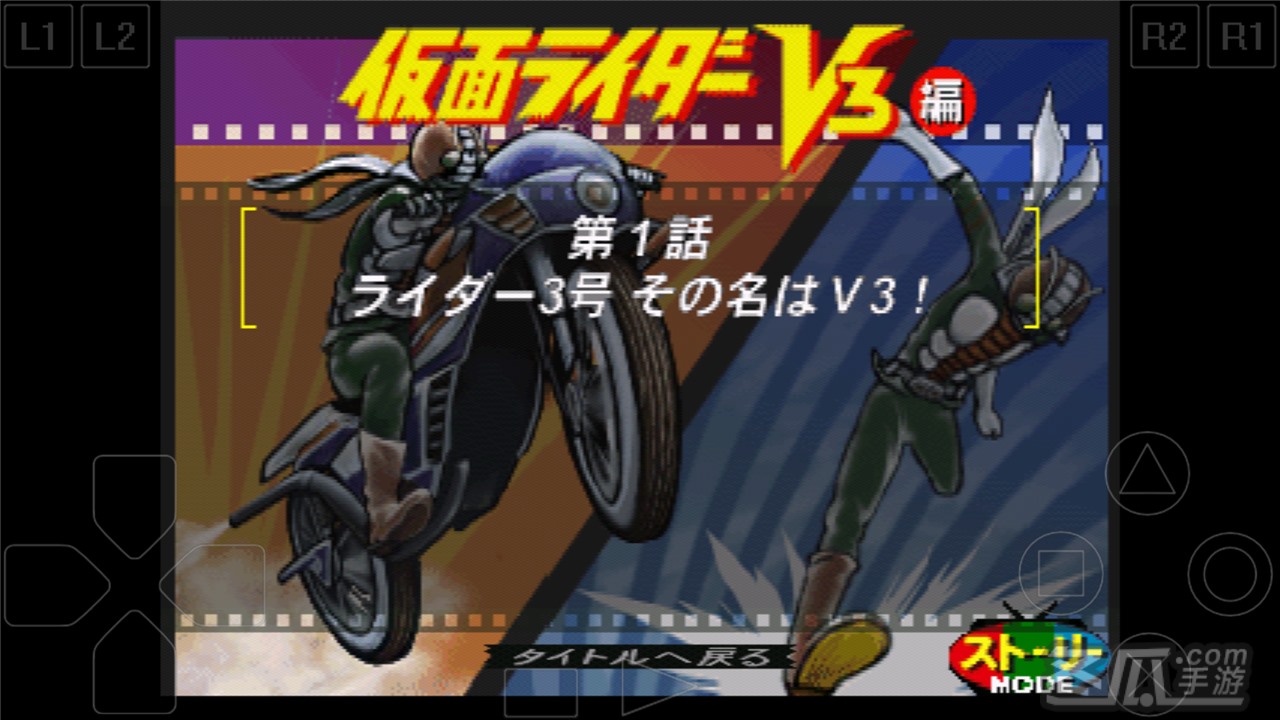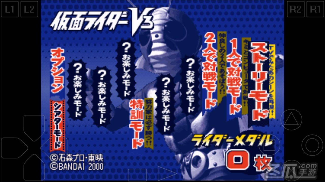 《假面骑士V3》BANDAI在PlayStation平台上推出的《V3》3D格L动作游戏,于2000年9月18日发售,由KAZe所制作。游戏系统以1998年发售的格斗游戏“假面骑士”(以下简称“前作”)为基准,但使用角色与隐藏要素均有增加。