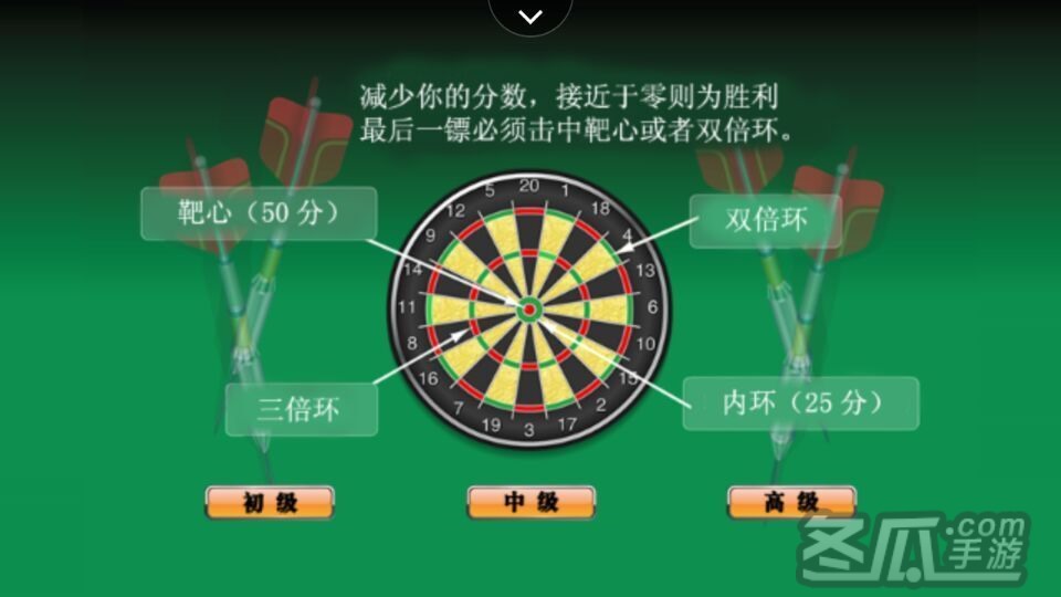 阁下是飞镖高手吗?你敢和不同程度的飞镖高手过招吗?游戏中有初级、中级、高级三种程度等你来虐。叫上你的小伙伴一起来吧。游戏玩法:载入游戏后选择等级,再根据红十字架瞄准靶心,在通过右边与下边走动条来控制飞镖。