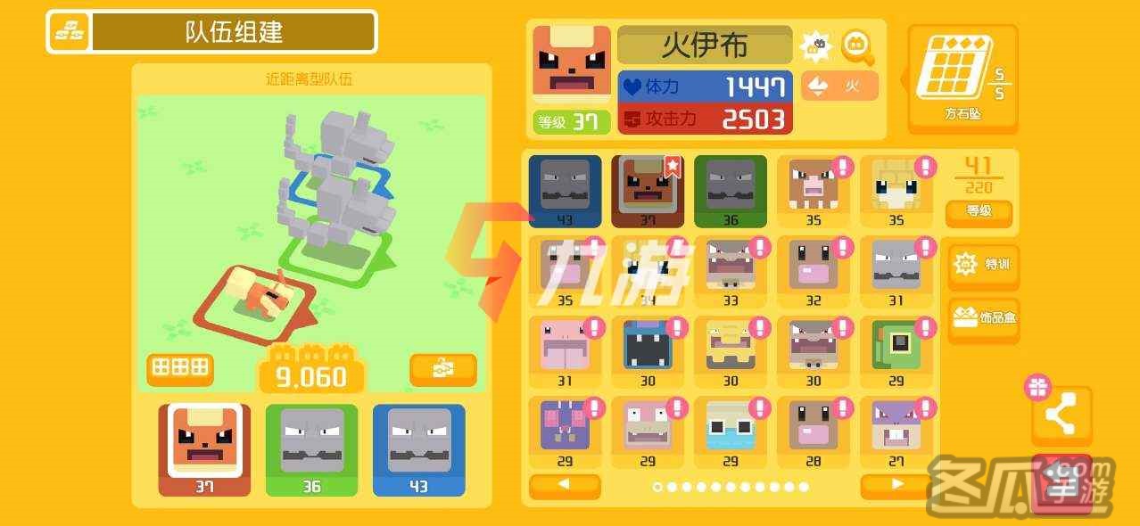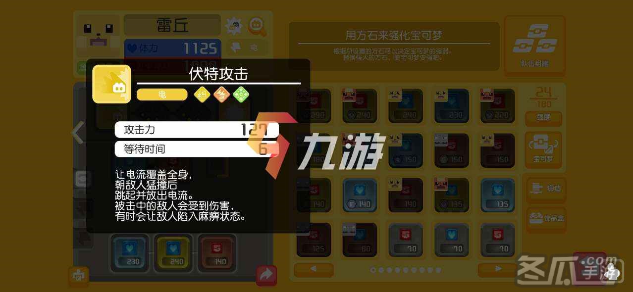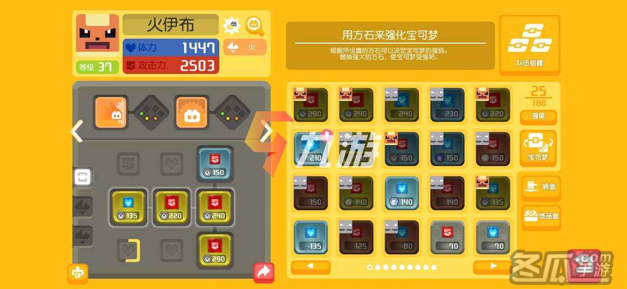 而属性石则是赋予方石对应的属性,这里拿火伊布举例,如果给他的方石都附魔上火属性,就可以激活宾果属性的奖励,攻击速度提升debuff时间延长。部分宝可梦只有在解锁宾果属性后战力才会发生质的改变。