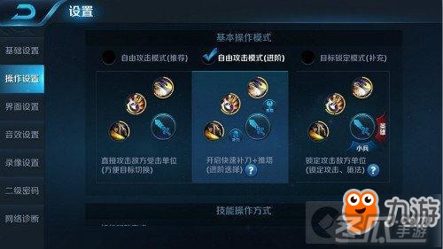自由攻击模式是玩家最喜欢的操作模式,设置了之后,推塔补刀的时候非常实用,避免了想去打塔却是打在了敌方英雄身上致使自己被防御塔攻击。