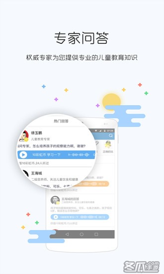 [一分答]用户可以在平台中免费提出儿童教育等方面的疑问,相关领域的权威专家通过音频方式为家长答疑解难。同时,专家的回答被沉淀用于分享交易,任何用户可支付一定数量的彩虹币收听专家回答,提问者和回答者都会获得相应的彩虹币分成。